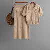 Ensemble Mode Petit Parfum Col Rabattu Cardigan Tricoté d'Été Haut Jupe Mi-longue Ensemble Deux Pièces