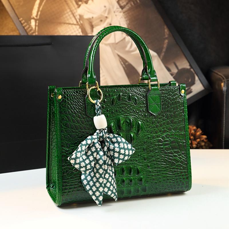 Sacs à main de luxe en cuir véritable pour femmes, motif crocodile, sac à bandoulière élégant et portable pour dame/maman, 2023