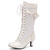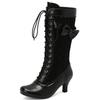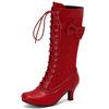 Mode Automne Hiver Bottes Hautes pour Femmes Noir Rouge Botte Haute au Genou Femme Talon Moyen Lacets Chaussures de Fête Dames Grande Taille