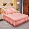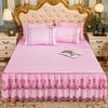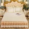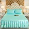 3pcs Embroidery Lace Skirt Style Fitted Sheet Set, All Seasons Universal Elastic Non-slip Bedding Set, Skin-friendly Soft Comfortable Fitted Sheet Set