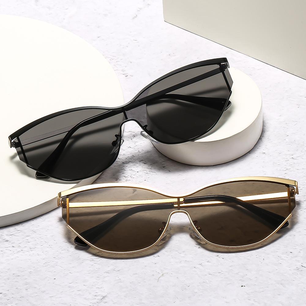 Lunettes de soleil pour femmes, lunettes de soleil de mode en métal monobloc pour hommes et femmes