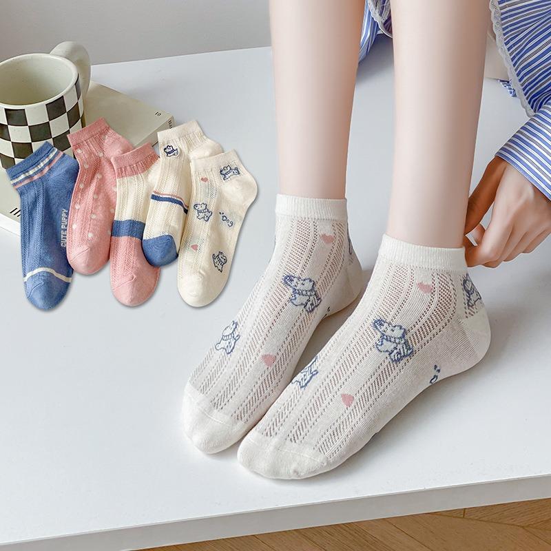 Women's Spring and Summer Short Cotton Socks, Breathable Boat Socks, Sweat-absorbing Net Socks, Summer Thin Girls' Cartoon Short Socks Trend