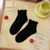 Chaussettes noires à bordure d'oreille, Chaussettes courtes pour femmes, Chaussettes d'été fines en coton, Chaussettes courtes en dentelle, Chaussettes polyvalentes unies pour le printemps et l'automne