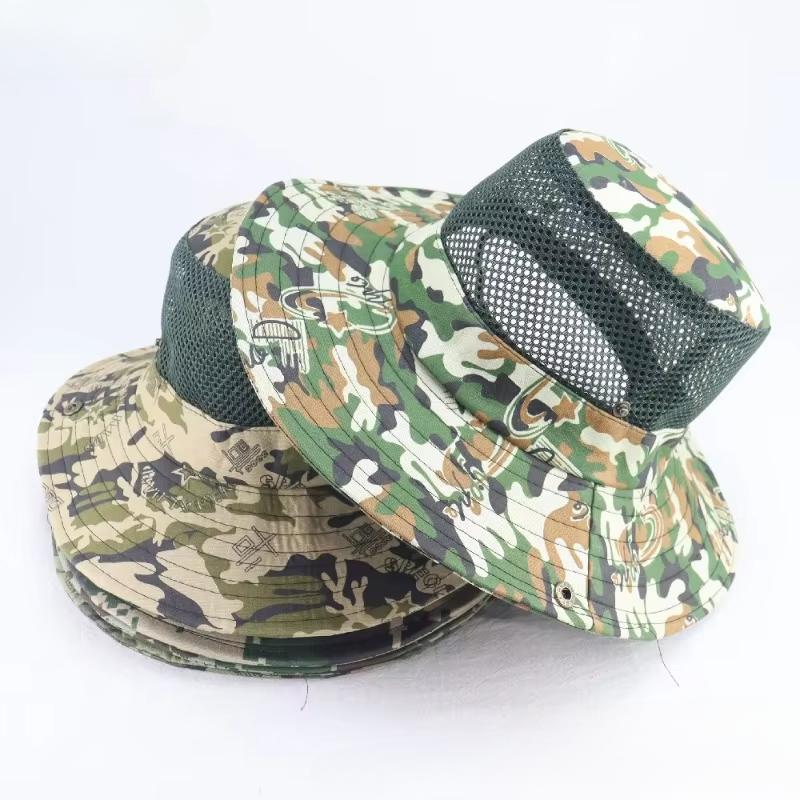 Camouflage Sun Hat for Men Summer Breathable Big Eave Sunshade Hat Outdoor Sport Climbing Hat Fishing Caps Foldable with Buckle