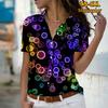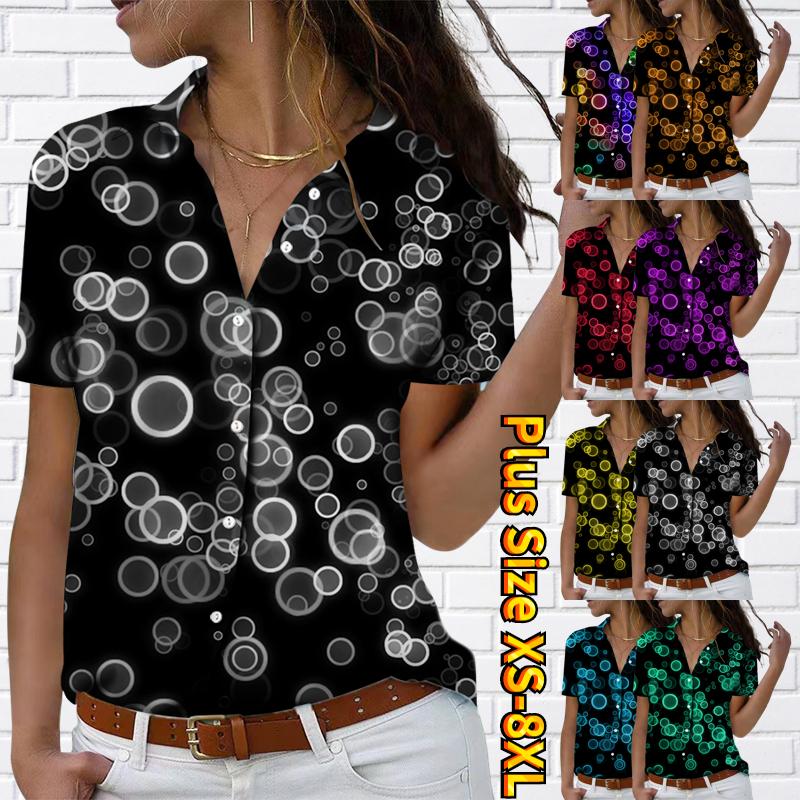 Mode d'été 2025 Nouvelle chemise décontractée à manches courtes et col en V pour femme, imprimé bulles, boutonnée sur le devant