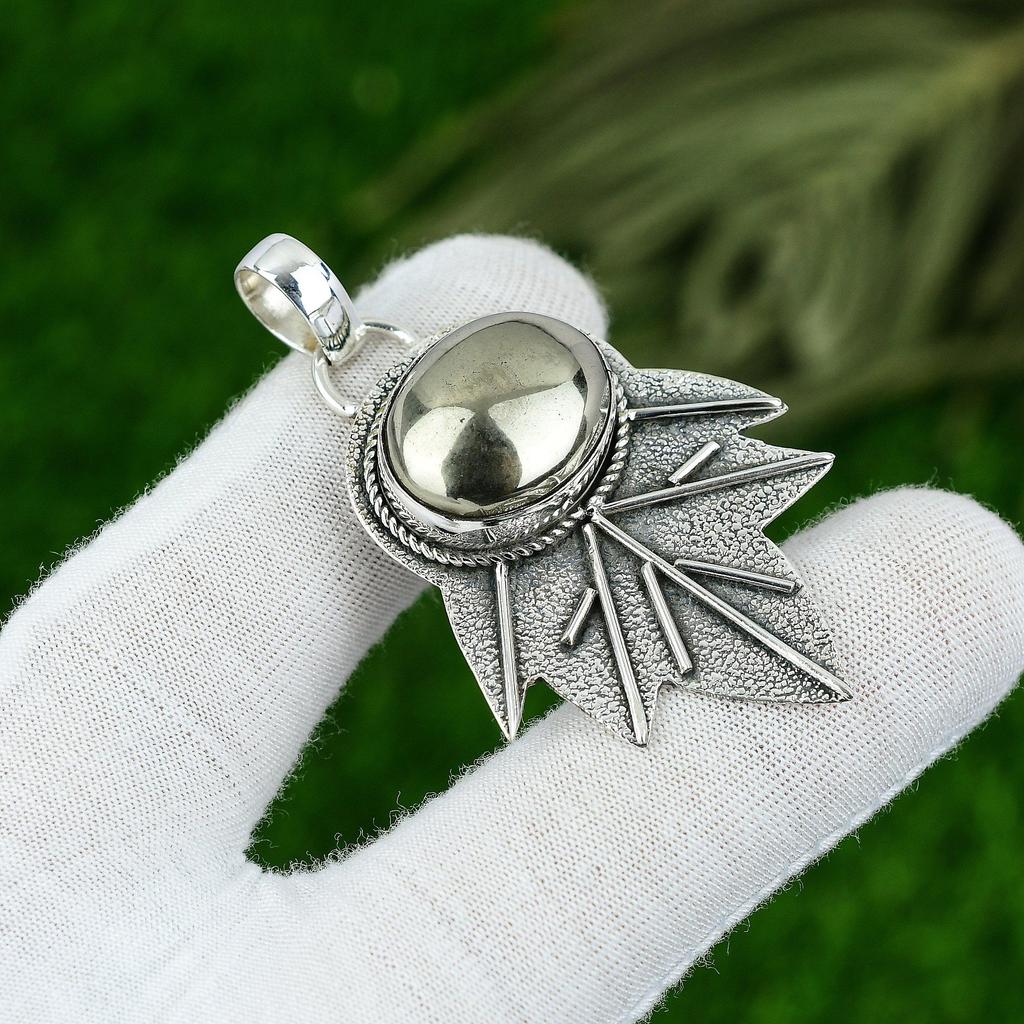 Cadeau d'anniversaire pour elle Pendentif Pierre Précieuse Pyrite Naturelle Argent Sterling 925