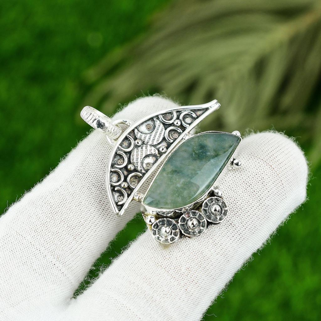 Cadeau Pour Femmes Pendentif Argent Sterling 925 Pierre Gemme Agate Mousse Solaire Naturelle