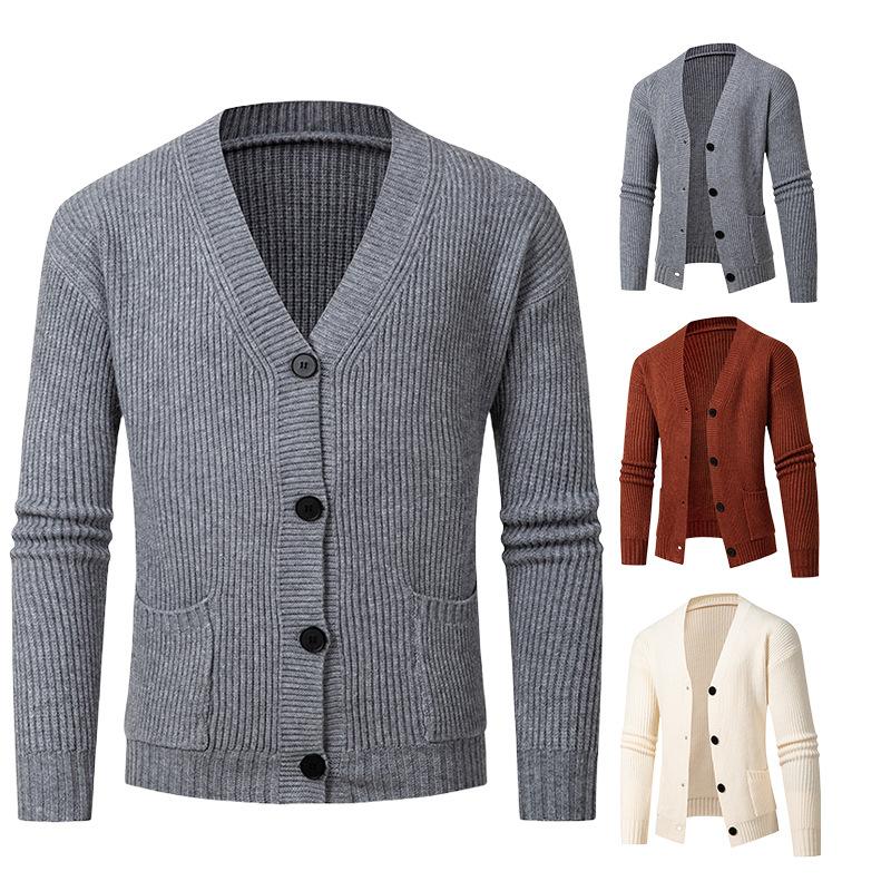 New Autumn and Winter Style Men's Simple Solid Color Sweater Trendy Cardigan Youth Knitted Jacket