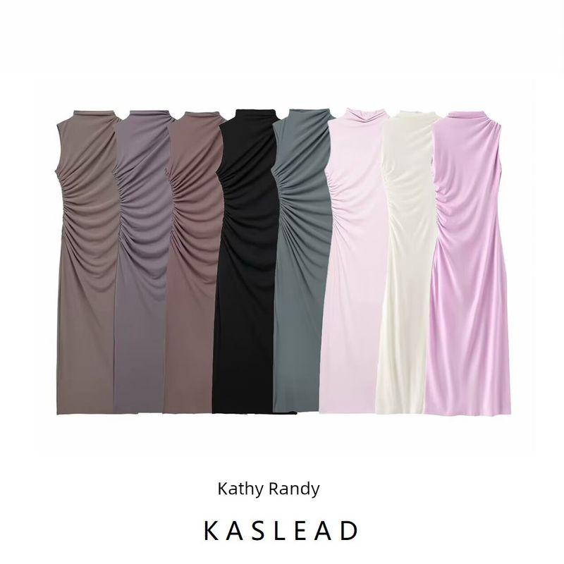 Women's New Silm Midi Skirt Dress Ruched Decoration