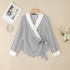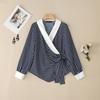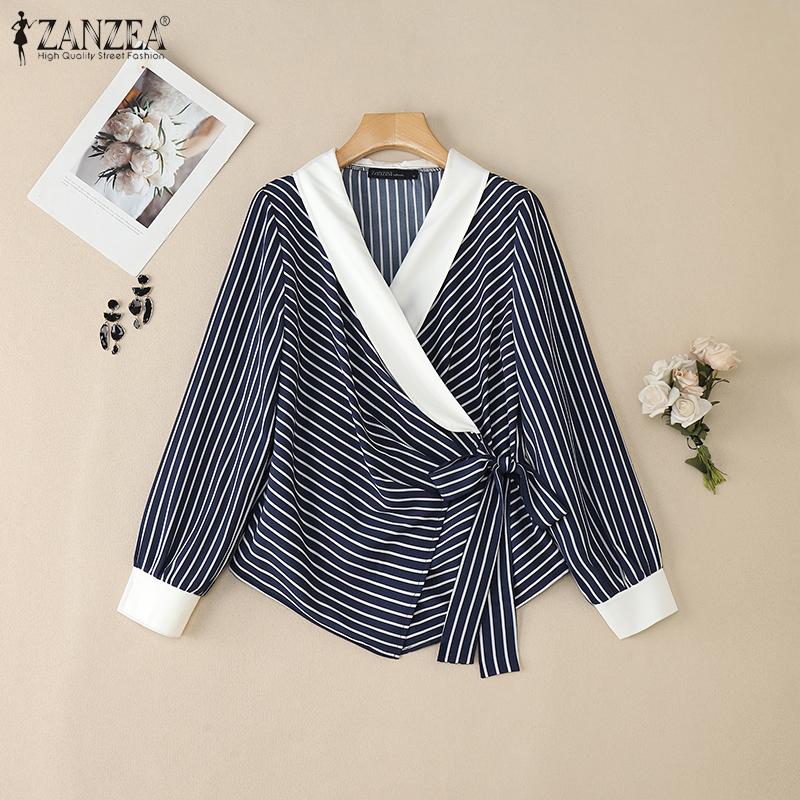 ZANZEA Blouse Décontractée Femme Col V Manches Longues Imprimé Rayures Lacée