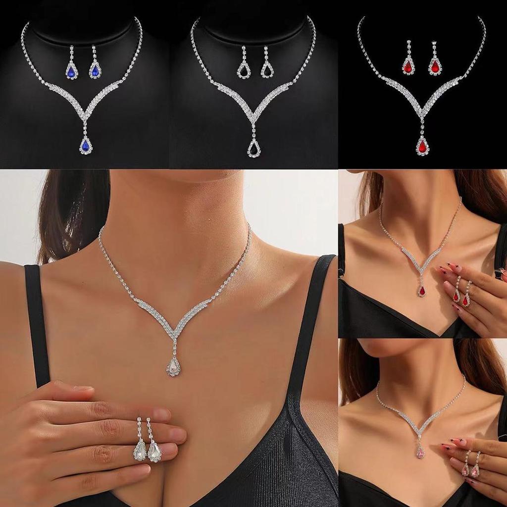 Ensemble collier et boucles d'oreilles luxueux avec pendentif diamant en forme de larme: Accessoires de mariage