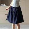 Jupe Midi Trapèze Style Preppy Bleu Marine - Taille Haute Rétro pour Printemps/Été 2025