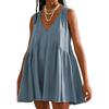 Robes décontractées à taille ample sans manches à col en V et à imprimé couleur unie pour femme, mode été printemps