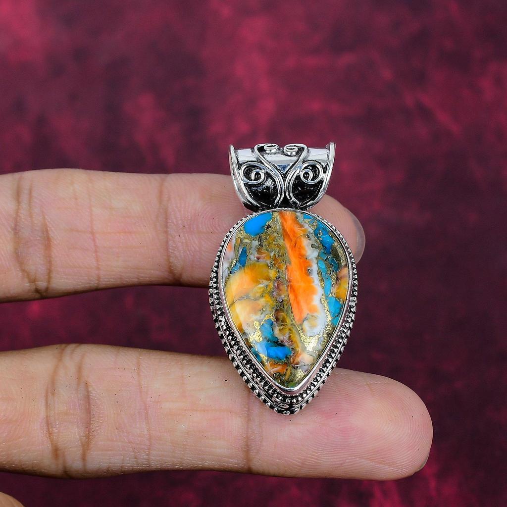 Orange Spiny Oyster Handmade Gemstone Pendant, 925 Solid Sterling Silver Pendant, For Thanksgiving