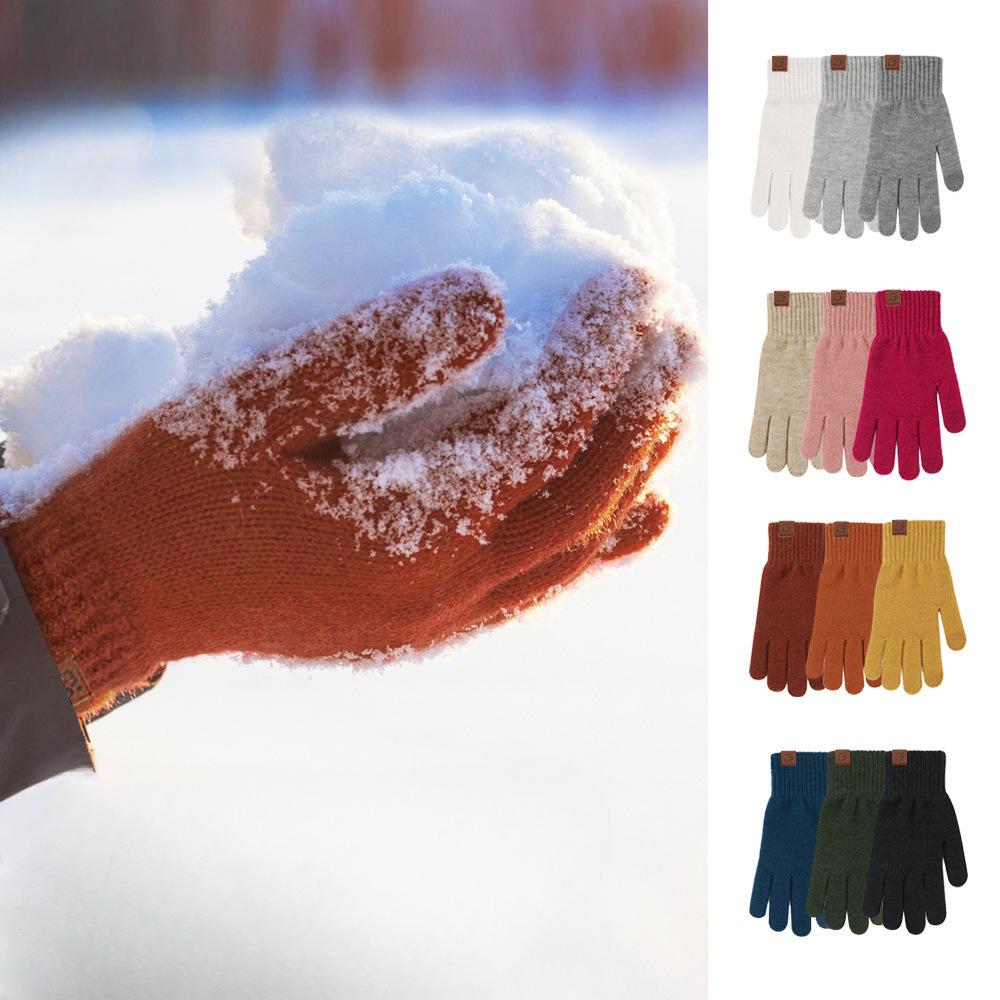 Winter Knitted Gloves for Warmth and Cold Outdoor Touch Screen Solid Color Plus Velvet Windproof Student Writing Wool Gloves for Riding Bike
