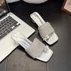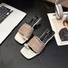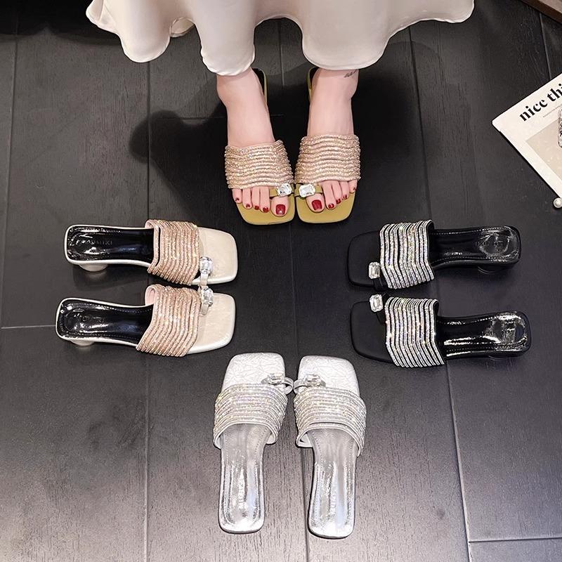 Silver rhinestone high-heeled slippers for women's summer wear new temperament high-end thick-heeled square head cover toe cool slippers