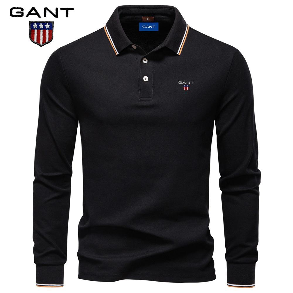 Gant Polo à manches longues pour homme, broderie automne 2025, haut pour homme de couleur unie avec revers, polo polyvalent pour homme