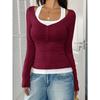 DAFIFY Chemisiers et chemises décontractés pour femmes, mode printemps-automne, couleur unie, imprimé, manches longues, col carré