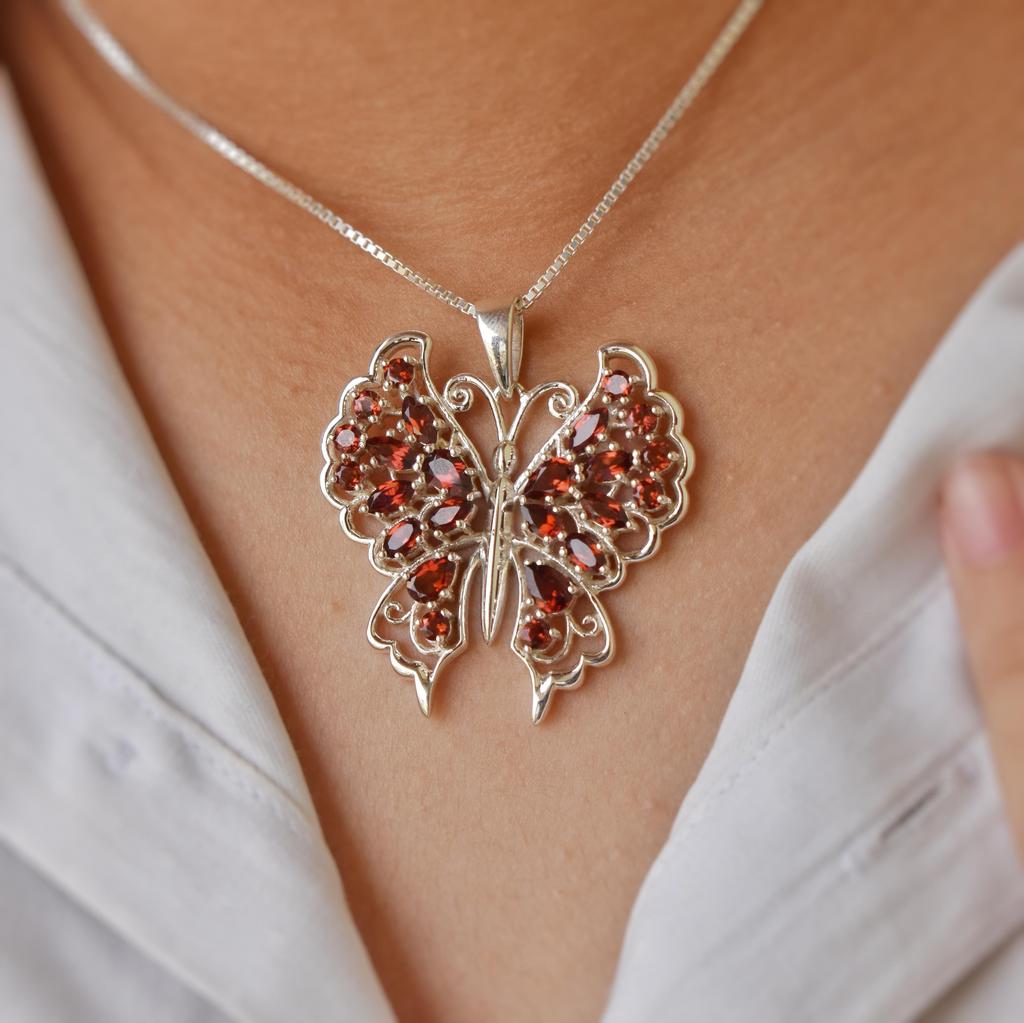 Natural Garnet Butterfly charm Pendant, 925 Silver Jewelry, Red Butterfly, Gift for her