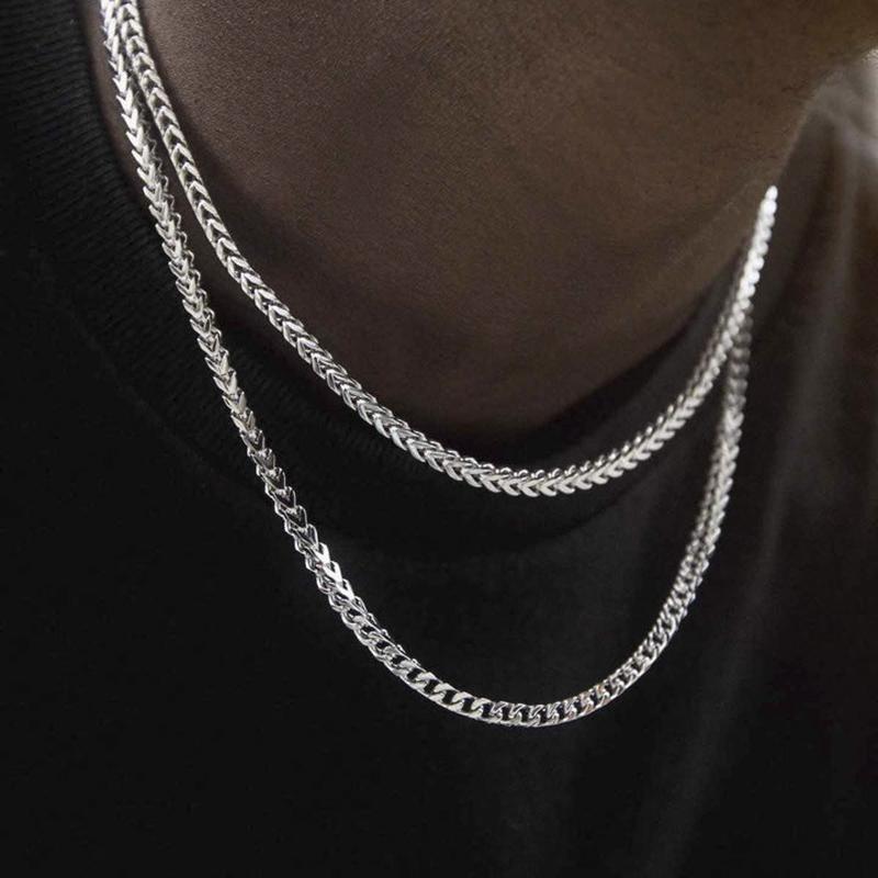 Collier Chaîne Franco pour Hommes Garçons, Collier en Acier Inoxydable Épais 3 mm, Chaîne Masculine Cadeaux Zircon