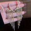 2 boucles d'oreilles pendantes incurvées pour femmes, élégantes boucles d'oreilles longues à pampilles en strass, magnifique zircon, cadeau de rendez-vous