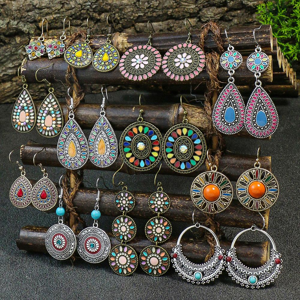 Nouvelles Boucles d'Oreilles Bohémiennes en Alliage Goutte Ronde Huile Multicolore Zircons Tournesol Ornement Distinctif Cadeaux Fête