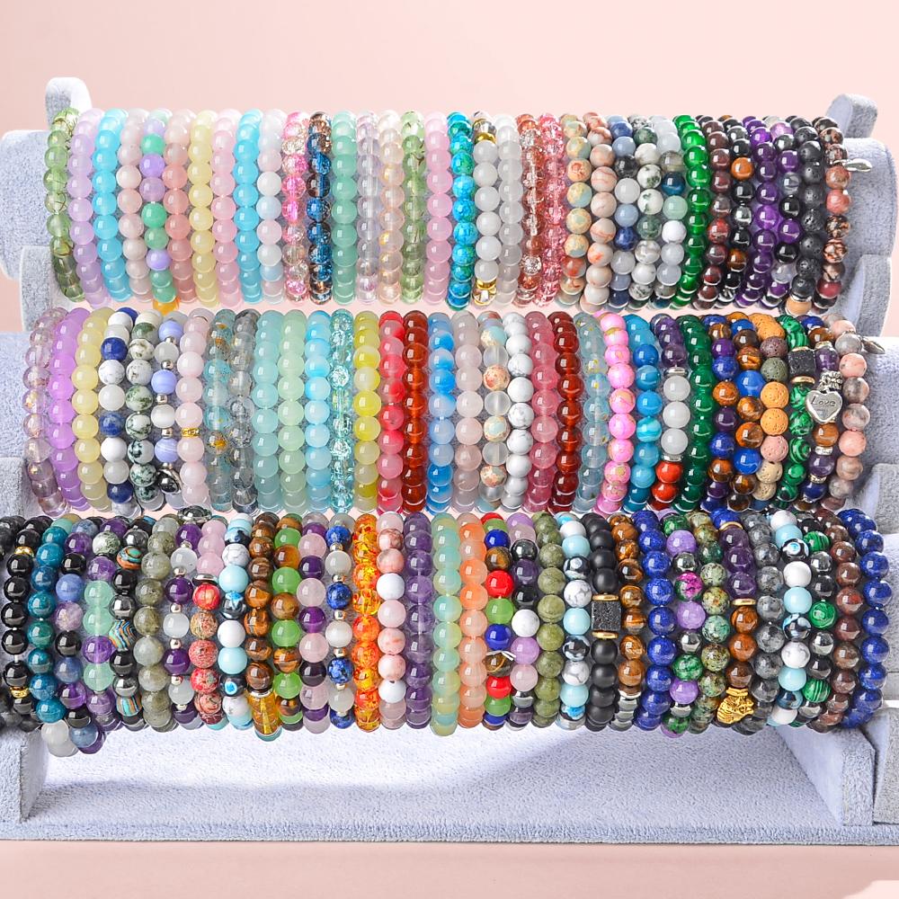Ensembles de bracelets de mode aléatoires 5/20/50/100 pièces en pierres naturelles perlées, couleurs multiples pour s'assortir à toutes les tenues