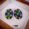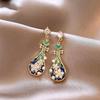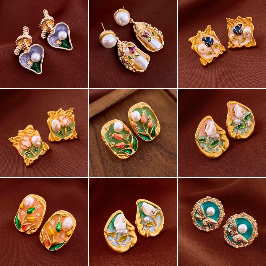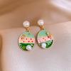 Boucles d'oreilles pendantes vintage en émail style peinture à l'huile - Luxe léger, design rétro haut de gamme pour femmes