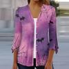 Cardigan Haut Chemise à Manches Sept Femmes Ample Décontracté Imprimé