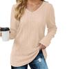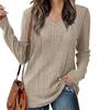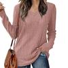 T-shirt décontracté à manches longues et col en V pour femme, couleur unie, haut confortable