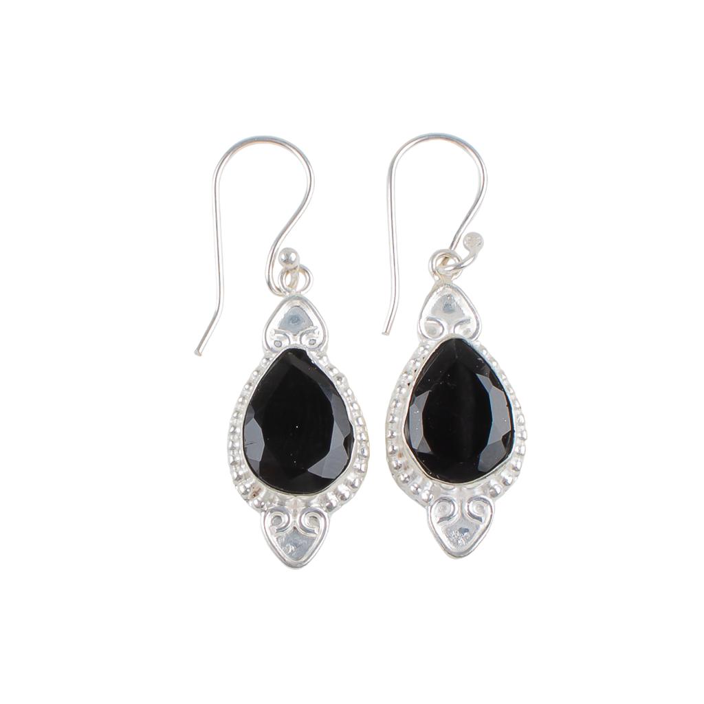Pierre Précieuse Onyx Noir Argent 925 Poinçonné Bijoux Boucles d'Oreilles Fait Main 1.80" Pour Cadeau EE-42-13