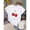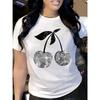 T-shirt à Imprimé Graphique Cerise Argentée Manches Courtes Col Rond Haut Décontracté pour l'Été & le Printemps Vêtements pour Femmes