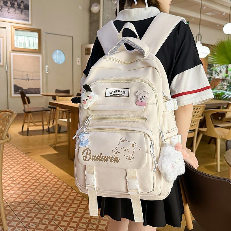 School bag new high-value college style fresh and sweet cute bear backpack junior high school students lightweight large-capacity backpack