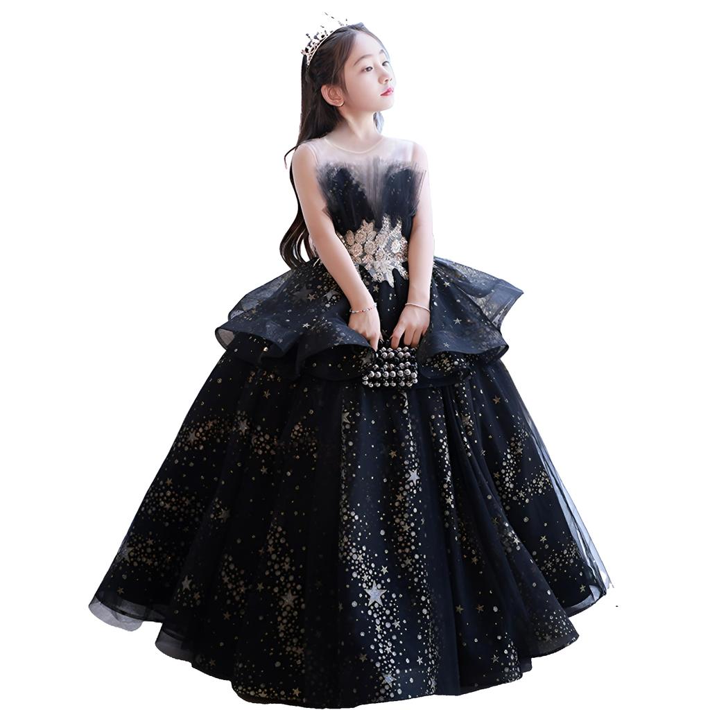 HOLRAFAN Récital de piano Robe élégante et luxueuse sans manches avec étoile Robe de soirée pour la scène et tailles Taille Robe enfant, Robe, Motif, Filles,