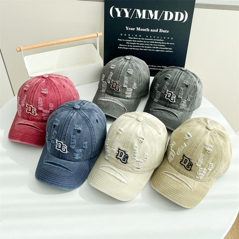 Casquette de baseball américaine rétro vieillie déchirée pour femme, polyvalente, personnalité, protection solaire, à large bord, montrant un petit visage