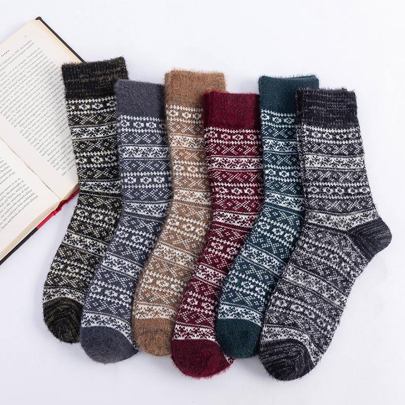 3 Paires de Chaussettes Montantes Chaudes Épaisses en Laine de Lapin Imitation Furets Style National Automne et Hiver pour Homme