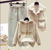 Ensemble 3 pièces pour femme automne hiver grande taille chaud en peluche sweat-shirt veste + pantalon épais et rembourré + veste sans manches