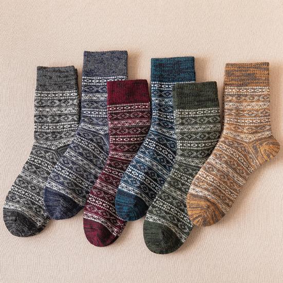 Warm Wool Socks for Men Winter Thermal Thick Crew Socks Vintage Style Retro Pattern