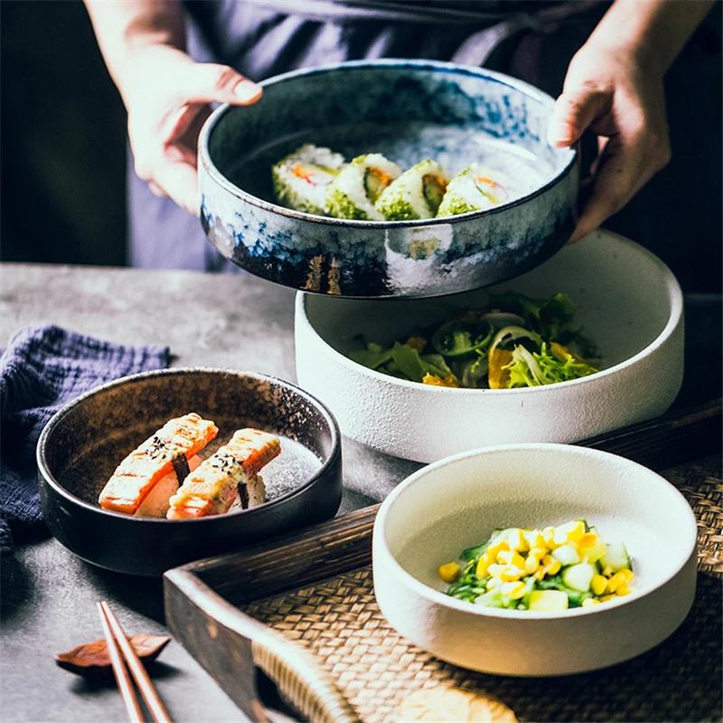 Japanese Creative Ceramic Bowl Salad Thick soup bowl Stewed soup Restaurant Fashion Dishes Deep Fruit bowl plate dishes