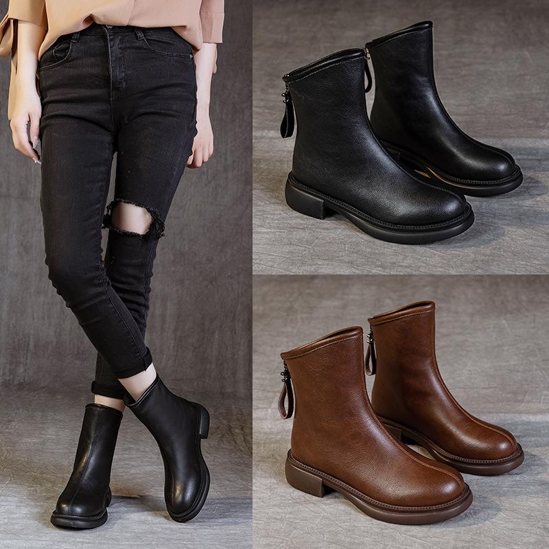 Bottes Martin en cuir de vache style britannique Printemps et Automne 2025 bottines rétro à fermeture éclair arrière bottes polyvalentes pour femmes bottes fines à talons épais à semelles épaisses