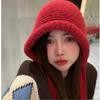 Hat women's winter big head circumference knitted hat versatile face small lace-up bag hat dual-purpose ear protector headgear
