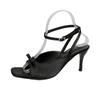Sandales à Nœud Satiné Mode Femme Luxe Créateur Chaussure de Soirée Robe Sangle Cheville Élégantes Mules à Bout Carré Escarpins Dames Slingback Talon Haut