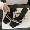 Mode Liyke Street Style Cristal Strass Soie Femmes Pantoufles Sandales Mode Bout Ouvert Talons Hauts Fins Stripper Fête Diapositives Chaussures