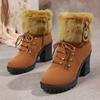Mode Mode Hiver Femmes Bottines à Talons Carrés Chaudes Antidérapantes Fermeture Éclair Bottes de Neige Chaudes Talon Haut Bout Rond Bottes pour Femmes