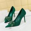Mode 2024 Nouvelle Mode Escarpins Pointus en Daim Strass pour Femmes Nœud Papillon Luxe Pierre Précieuse Fête Talon Haut Fin Chaussures Simples