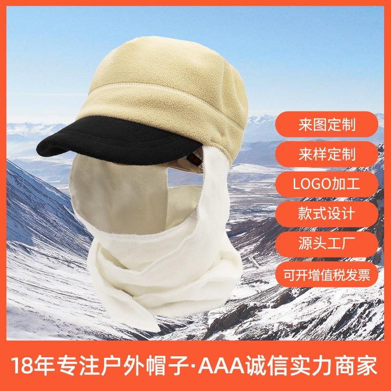 Scarf and hat integrated two-piece set, autumn and winter cold-proof outdoor warm ear protection hat, shawl one-piece hat, fleece cap