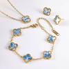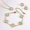 3 pièces collier trèfle bracelet boucles d'oreilles en acier titane à la mode, cadeau luxueux pour la Saint-Valentin et la fête des mères