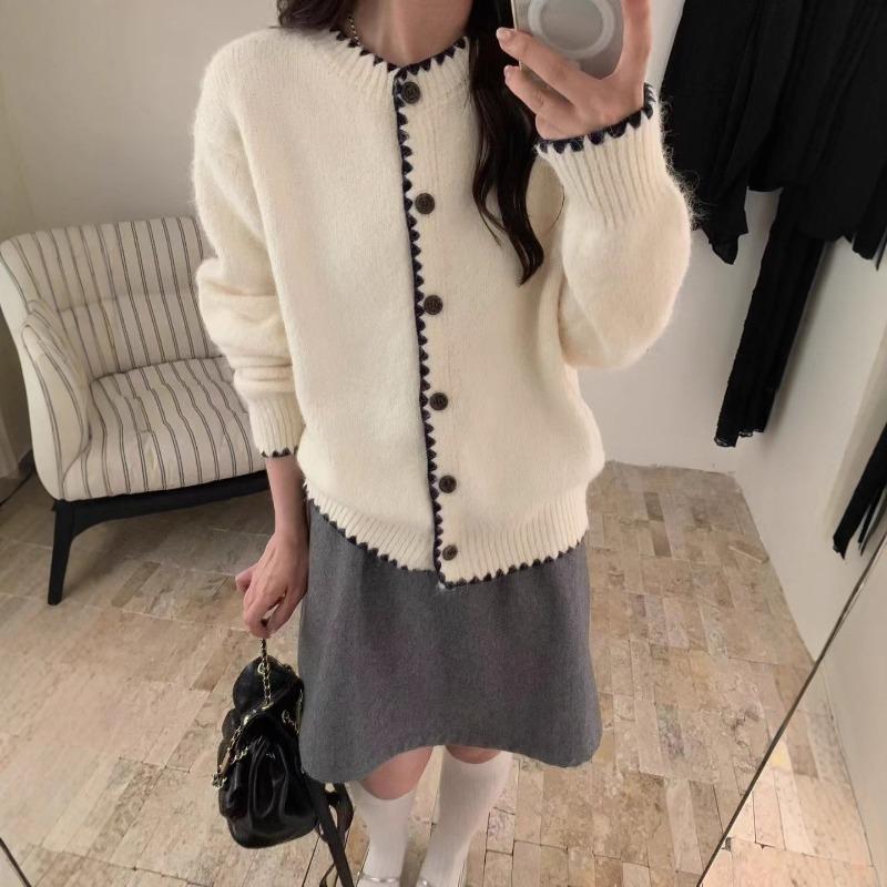 Knitted cardigan women's clothing autumn and winter new round neck lace lazy wind loose casual sweater jacket women