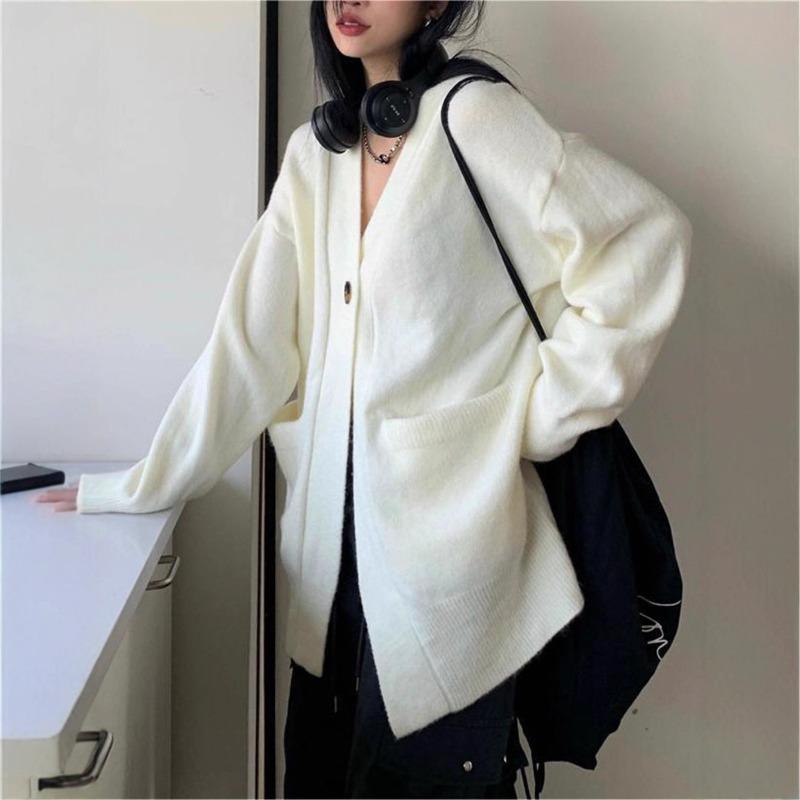 V-neck gentle wind knitted cardigan for women's autumn and winter new temperament loose and thin sweater jacket for women