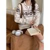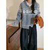 Retro gentle jacquard sweater jacket for women's autumn and winter new loose contrasting color zipper knitted cardigan for women